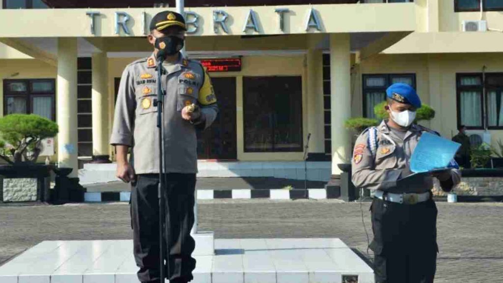 Memontum Situbondo – Kapolres Situbondo, AKBP Ach Imam Rifai SH SIK M PICT M ISS, memimpin apel dan memberikan arahan kepada Pejabat Utama, Kapolsek jajaran dan anggota Polres serta perwakilan Polsek Jajaran, Senin (14/06) tadi. Dalam apel itu, Kapolres memberikan dua penekanan terhadap personil.
