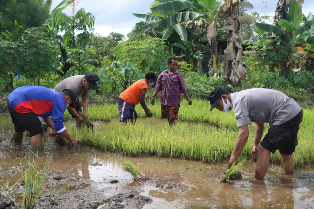Tribratanews.polri.go.id – Mimika- Guna membantu mensejahterakan Masyarakat Papua, Binmas Noken Polri Kembali melaksanakan kunjungan sekaligus mengecek Spot Pertanian di Jalur 6 Kamp. Mulia Kencana, Distrik Iwaka, Kabupaten Mimika, Sabtu (14/8/2021).