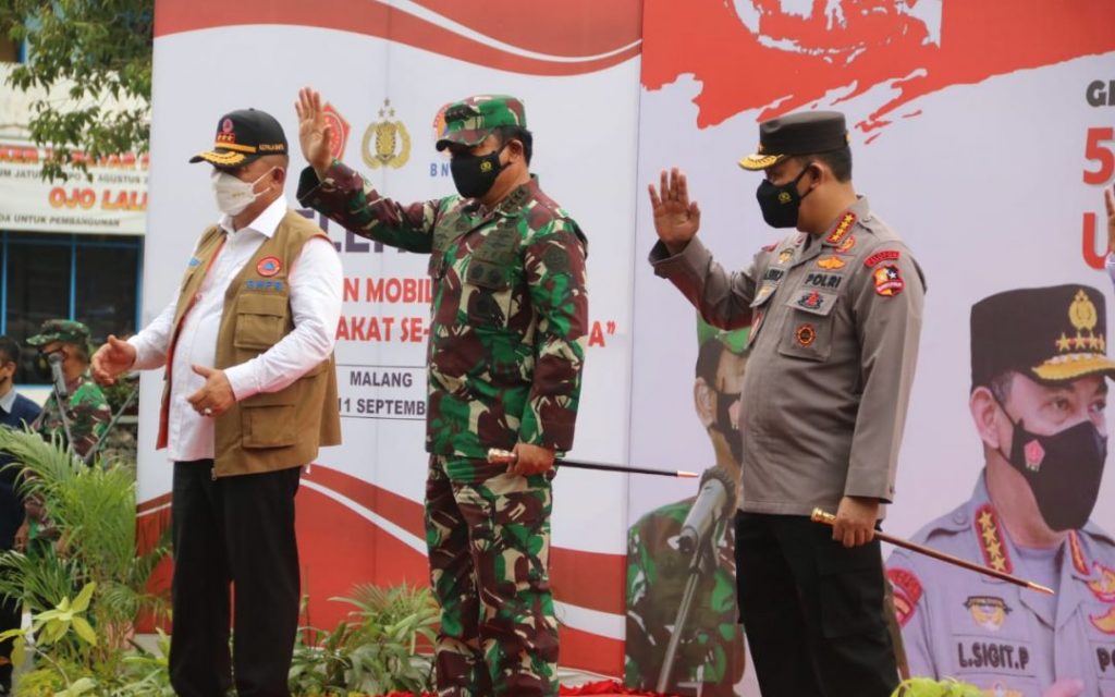 “Melalui gerakan ini, akan menyasar seluruh ruang publik di wilayah Malang Raya. Selamat pada kita semua, mudah-mudahan upaya yang kita lakukan hari ini akan mempercepat Malang Raya untuk bisa lepas dari pandemi Covid-19,” pungkas Panglima TNI.