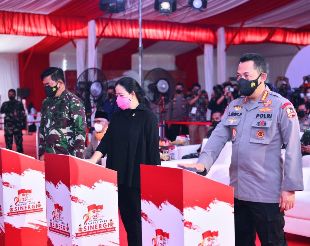 “Saya apresiasi yang dilakukan TNI dan Polri dalam proses vaksinasi dan pemberian bansos dan bagaimana mengedepankan transformasi digital UMKM,” kata Puan.