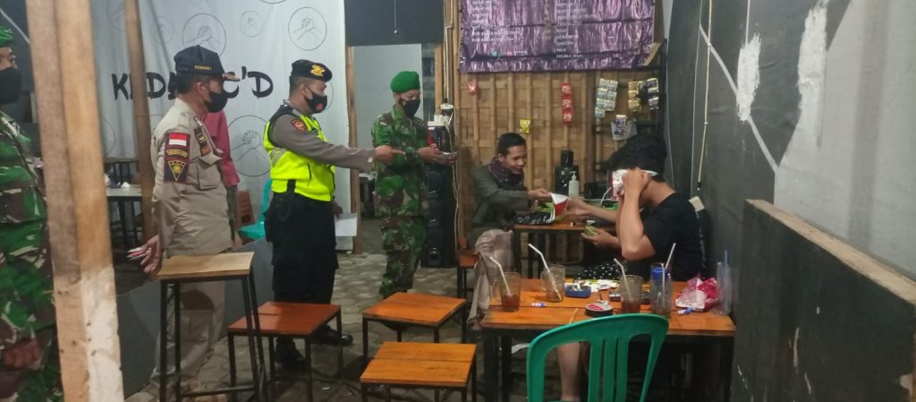 Beberapa anggota gabungan dari Polres Pekalongan Kota, Kodim 0710 Pekalongan dan Satpol PP, menyambangi beberapa warung makan dan warung kopi serta tempat tempat keramaian.
