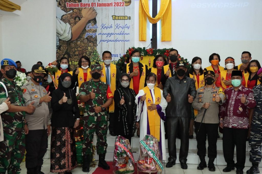 Kapolres Bontang AKBP Hamam Wahyudi bersama Walikota Bontang Basri Rasse, Wakil Walikota Bontang Hj. Najirah dan Dandim 0908 Bontang Letkol Arh.Choirul Huda meninjau pengamanan perayaan Natal di Gereja- Gereja di Kota Bontang, (25/12/2021).